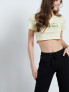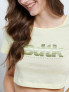 Γυναικεία κοντομάνικη μπλούζα με crop σχεδιασμό και λογότυπο στο μπροστινό μέρος.