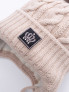 Σκούφος με πλεκτή κατασκευή και διακοσμητικά στοιχεία.