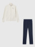 Σετ με πλήρες φερμουάρ και καθαρό, μοντέρνο σχεδιασμό, σχεδιασμένο για καθημερινή άνεση. Κατασκευασμένο από ελαφρύ fleece από μείγμα βαμβακιού με βουρτσισμένο εσωτερικό, συνδυάζει απαλότητα και στυλ.