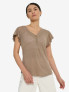 • Λαιμόκοψη V, κουμπιά και λεπτές βολάν στα μανίκια