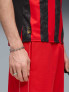 Αυτή τη σεζόν, κάθε λεπτομέρεια φωνάζει... AC Milan. Τα εμβληματικά κόκκινα και μαύρα χρώματα συνδυάζονται με φλόγες στις ρίγες και έναν φλογερό κόκκινο θυρεό, αποτυπώνοντας με σύγχρονο τρόπο την ιστορική φιλοσοφία του συλλόγου — "κόκκινο σαν φλόγες και μαύρο σαν τον φόβο που προκαλούμε στους αντιπάλους μας"Η ενδυμασία αυτή, πέρα από αισθητικό statement, δείχνει ότι η κληρονομιά της ομάδας είναι ζωντανή — όπως λέει και η ομάδα: "Rossoneri, bring the heat"
