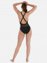 Κομψό ολόσωμο γυναικείο μαγιό με ανοιχτή πλάτη και μοντέρνο σχέδιο με διχτυωτό ύφασμα στην πλάτη, φαρδιές τιράντες, σταυρωτό πίσω και αφαιρούμενη επένδυση.