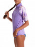 Κομψό μαγιό σε όμορφο λιλά χρώμα με μανίκια σε αντίθεση, με αντηλιακή προστασία UPF40 μέσα και έξω από το νερό. Για νεαρούς κολυμβητές από την παραλία μέχρι την πισίνα, το ύφασμα ECO EnduraBrite προσφέρει ανώτερη απόδοση χρωμάτων, ώστε να μπορείς να απολαμβάνεις την κολύμβηση για μεγάλο χρονικό διάστημα. Επιπλέον το ύφασμα είναι ανθεκτικό στο χλώριο σε σχέση με τα συνηθισμένα μαγιό.